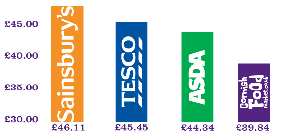 This price comparison is on products only and excludes any delivery charges that the supermarkets may apply - delivery charges may also apply to your cornishfoodmarket.co.uk order depending on your location.