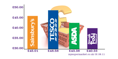 We've run another price comparison on a pretty standard basket of goods and we've beaten Tesco, Sainsbury's and Asda yet again on a like for like comparison - add in the supermarket delivery charges against our FREE delivery and you save even more as the graph above shows. More details of what was in our basket and how the prices compare can be seen below.